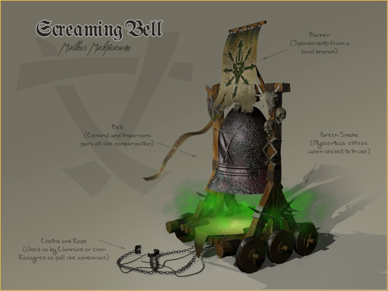 On the Battlefield these Bells are an enormous asset to the Skaven Hordes. Causing fear and terror in their enemies and things that are much worse.