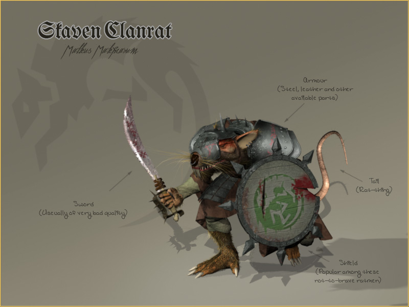 Those rats that don’t qualify as Eshin, Seers or some membership of another sophisticated Clan usually end up as a Clanrat. They are far from as dangerous as the Eshin and much lesser intelligent than the Seer, but they have one advantage - their number is huge!