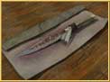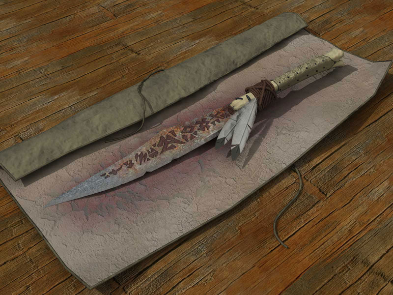 The knife shown here has been used for the cruel ritual. Rather small, made of human bones and skin, chicken feathers and the blade of rusty steel inscribed with unholy Skaven symbols.